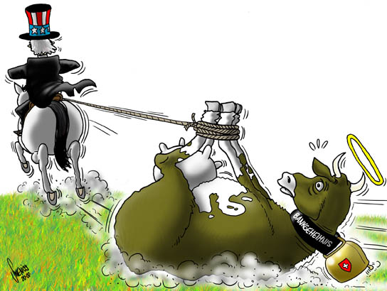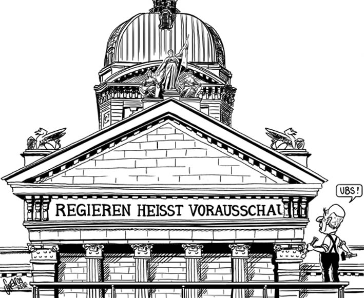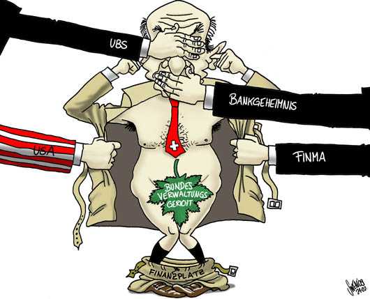 Hans-Rudolf Merz, «der willfährige Bundesrat» wie ihn in etwa der Schweizer Politberater Iwan Rickenbacher bezeichnet, muss sich jetzt auch gefallen lassen, dass seine Nähe zur UBS hinterfragt wird. Der Finanzminister rüffelte zwar die hohen Saläre der Bankmanager. Die umstrittenen Boni-Zahlungen von über 2,2 Milliarden Franken, welche die Aufsichtsbehörde der UBS trotz Staatshilfe bewilligte, verteidigte er aber durch alle Böden. Merz sei Teil des Problems, «weil er im Vergleich zu seinem Vorgänger Villiger eine hohe Willfährigkeit gegenüber den Banken an den Tag legt», erklärt denn auch der frühere Preisüberwacher Rudolf Strahm der Wochenzeitung (WOZ).