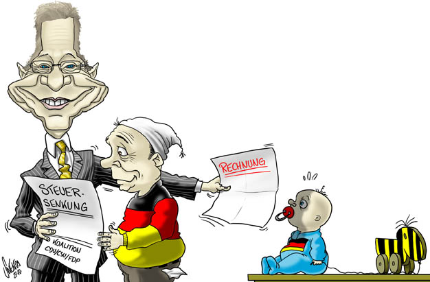 Trotz Rezession verspricht die neue Regierung Steuersenkungen in der Hoehe von 24 Milliarden Euro jaehrlich! Wer soll das bezahlen...