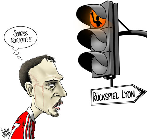 Wenns mal nicht laeuft, laeufts nicht. Bayern Muenchen Star Ribéry fliegt mit roter Karte gegen Lyon im Champions League Halbfinal vom Feld, dazu die Vorwuerfe mit einer minderjaehrigen Prostituierten Sex gehabt zu haben (nachdem schon einige Spieler aus Frankreich mit derselben Dame Kontakte hatten!).