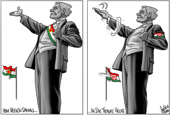 Gewaltiger Rechtsruck in Ungarn. Neonazis erzielen 15 Prozent!!! Die bisher regierenden Sozis stuerzen ab. Der konservative Orban erreicht mit seiner Partei die absolute Mehrheit und wird das Land in Zukunft regieren. In zwei Wochen ist der zweite Wahlgang, der an diesem Ergebnis nicht mehr viel aendern wird.