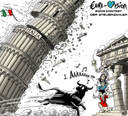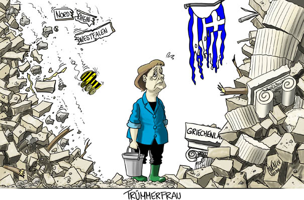 Kanzlerin Merkels CDU verliert die wichtige Wahl in NRW und somit auch die Mehrheit im Bundesrat. Somit wird es fuer die Koalition mit der FDP sehr schwierig in Zukunft zu regieren und Gesetze zu aendern. Dazu die Finanzprobleme Griechenlands und des Euros, Deutschland uebernimmt hier die Aufgabe des groessten Hilfestellers.