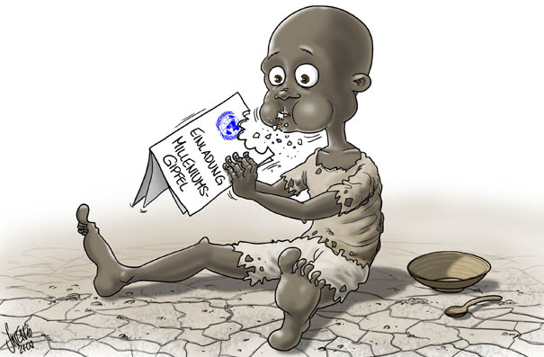 Die UN wollen bis 2015 die Zahl der Hungernden und der Ärmsten halbieren. Der Asienboom lässt das in greifbare Nähe rücken, doch in Afrika sind die Probleme noch immens. Jetzt ziehen die UN eine Zwischenbilanz. Diekmann verlangte, «auch konkret Einfluss auf die Regierungen in den betroffenen Ländern» zu nehmen. «Ganz oft leben Hungernde in Ländern, in denen es schlechte Regierungsführung gibt, in denen es Bürgerkriege gibt, in denen innenpolitisch die Probleme nicht bewältigt werden», sagte sie.