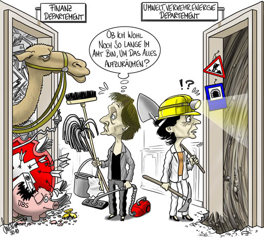 Bundesrat Merz und Bundesrat Leuenberger haben Heute Sonntag ihren letzten Arbeitstag und uebergeben an ihre Nachfolgerinnen.