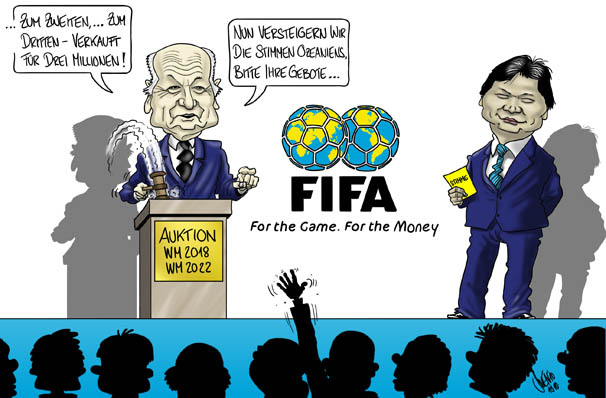 Bestechungsskandal bei der FIFA (wieder einmal). Funktionaere boten gegen Dollares ihre Stimmen fuer die Vergabe der naechsten WM an. Warum versteigern die das Ganze nicht einfach? Waere legal und braechte erst noch mehr Kohle!