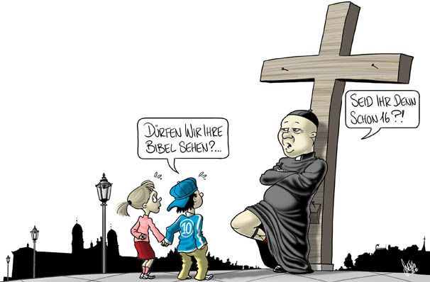 Die Bibel erst ab 16 und das Kruzifix aus der Schule verbannen. Das fordert die Freidenker-Bewegung aus dem Wallis. Die immer staerker in der Kritik stehende Kirche rutscht vor allem auch nach Eigenverschulden mehr und mehr ins schiefe Licht.