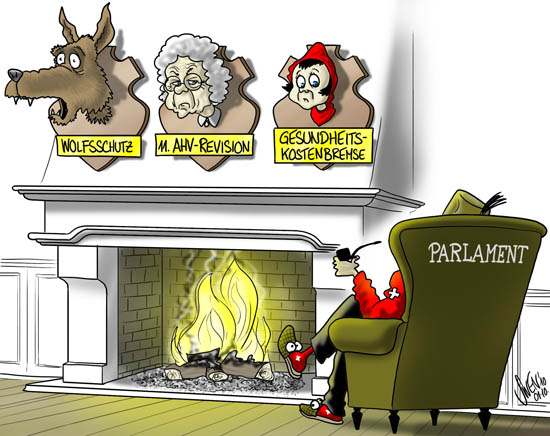 In der letzten Sessionswoche lehnte das Parlament die wichtigsten Vorlagen ab und hinterlaesst einen Scherbenhaufen. Rentenalter 65, Bremse der Gesundheitskosten, Schutz des Wolfes.