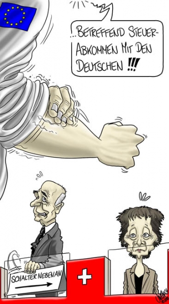 Einigung im Steuerstreit: Nach jahrelangen Auseinandersetzung haben Deutschland und die Schweiz ihre Streitigkeiten in der Steuerpolitik beendet. Dazu unterzeichneten beide Laender ein neues Doppelbesteuerungsabkommen fuer einen besseren Informationsaustausch. Deutschlands Finanzminister Wolfgang Schaeuble und der abtretende Bundesrat Merz, bzw. seine Nachfolgerin Widmer-Schlumpf, wollen außerdem darueber verhandeln, wie Geld von deutschen Steuerbetruegern auf Schweizer Konten legalisiert werden kann. Doch der Teufel steckt im Detail und genau darauf duerfte die EU zurueckkommen.