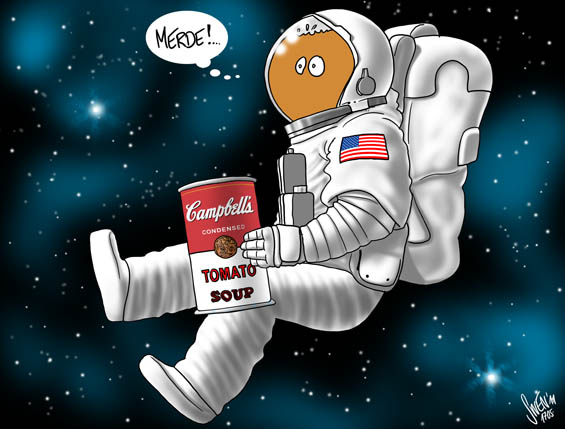 Die NASA tueftelt seit langem am perfekten Essen fuer einen laengeren Aufenthalt im All wie zum Beispiel eine Reise zum Mars. Dabei wird alles getrocknet, verschweisst in Plastik und mit Wasser im All wieder zubereitet, wobei die genaue Menge an Wasser entscheidend ist, nicht zu wenig (flockig) und sicher nicht zu viel.