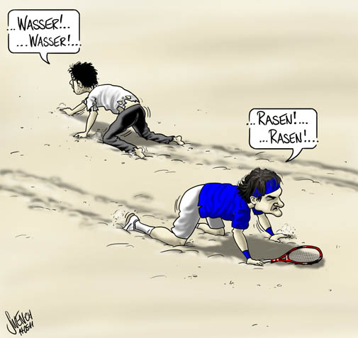 Roger Federer in der Krise. Er scheidet in Rom beim Sandplatzturnier frueh ohne Motivation und Ideen aus. Als naechstes kommt Paris - ebenfalls auf Sand - bevor endlich Wimbledon auf seiner Lieblings-Unterlage Rasen folgt.