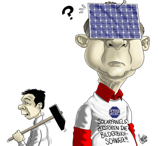 Der Heimatschutz beschwert sich doch tatsaechlich gegen den Bau von Solarpanels auf Altstadt-Daechern, weil sie das Gesamtbild stoeren koennten!