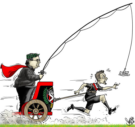 Xamax-Praesident Tschagajew haelt nach wie vor alle zum Narren. Seinen Spielern zahlte er bisher die Loehne nur nach Lust und Laune. Ebenso die Stadionmiete und sonstige Schulden.