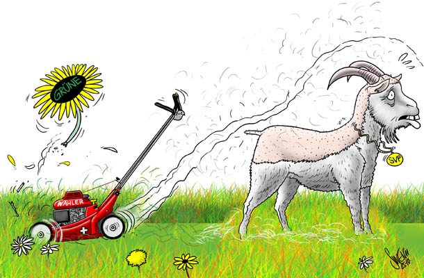 Gruene und SVP verlieren am staerksten bei den Nationalratswahlen 2011. Gruene trotz Fukushima (oder wegen?) und die SVP zum ersten Mal seit Jahren. Da nuetzte auch das Maskottchen Zottel den Konservativen wenig.