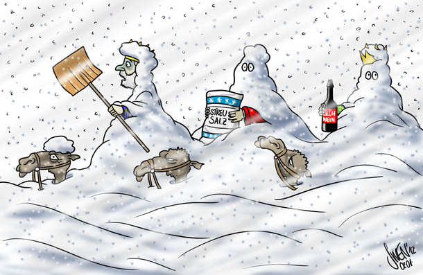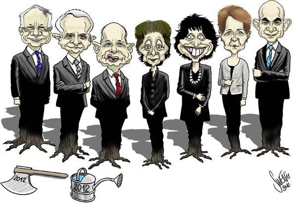 Das neue Foto des Bundesrates zeigt diesen vor einem Bild eines Waldes. Schon zum Start ins neue Jahr ein Steilpass fuer Karikaturisten...