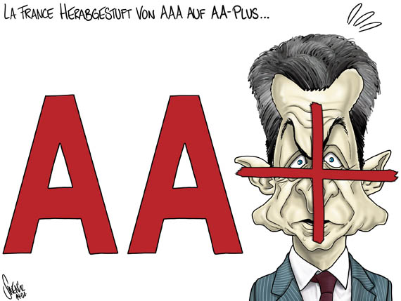 Die Rating-Agentur Standard & Poor's stuft die Kreditwuerdigkeit Frankreichs herunter. 3 Monate vor den Praesidentschaftswahlen koennte das Sarkozy das Genick brechen...