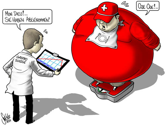 Schweizer Wirte verdienten letztes Jahr weniger und mit Aussicht auf die Rezession muessen wohl oder uebel die Guertel enger geschnallt werden.