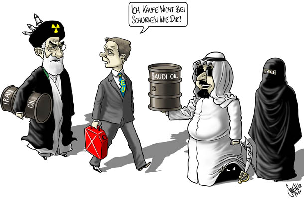 Die EU kauft kein Iranisches Oel mehr, so lange bis das Land beweist, dass es nicht an einer Atombombe bastelt.