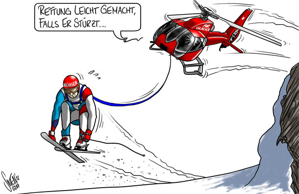 Auch am diesjaehrigen Lauberhorn sind viele Rettungsteams in Bereitschaft, falls es zu Unfaellen kommen sollte.