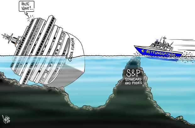 Standard & Poor's stuft nun auch den Rettungsschirm fuer die Eurozone von Triple A auf AA+. Nicht nur der italienische Kreuzfahrtdampfer Costa Concordia ist in Seenot...