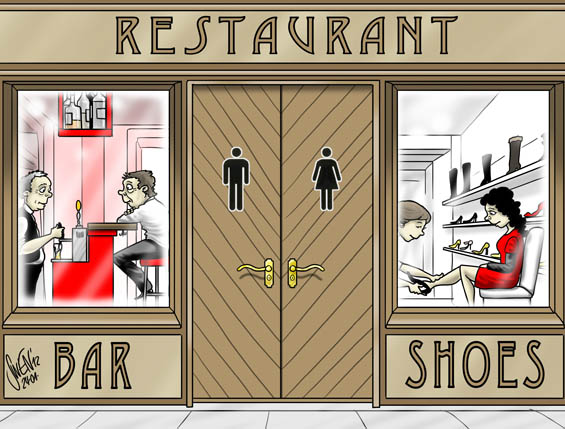 Immer mehr Restaurants werden zu Hybriden und bieten neben Essen und Trinken auch nicht Gastronomisches an. Ideal waere natuerlich ein Angebot bei dem Maennlein und Weiblein gleich gerne reinschauen.