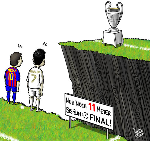 11 Meter koennen ganz schoen fies sein. Messi fuer Barcelona gegen Chelsea und Ronaldo fuer Real gegen Bayern verschossen ihre Penaltys in den entscheidenden Halbfinals.