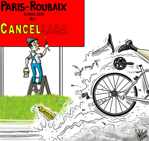 Fabian Cancellara stuerzt an der Flandernrundfahrt und bricht sich das Schluesselbein gleich 4fach. Bisher kam er ohne Stuerze durch seine Karriere, aber ein echter Radfahrer bricht sich mindestens einmal das Schluesselbein. Nach vielen Titelgewinnen nun also auch die Kroenung... Fuer den Radklassiker an Ostern muss er aber nun passen.