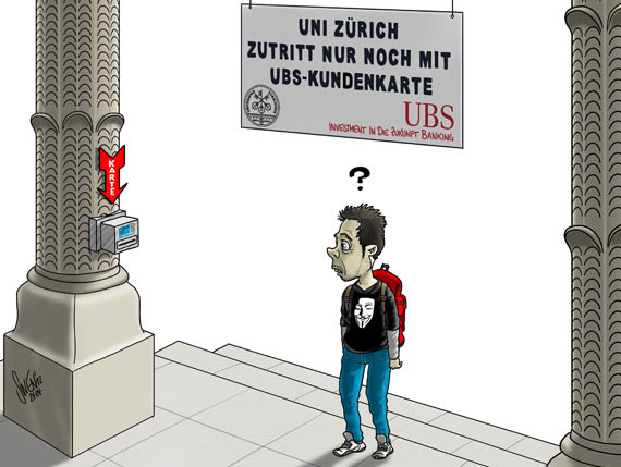 150 Jahrjubilaeum der UBS. Die Grossbank spendet 100 Millionen Franken der Universitaet Zuerich fuer Forschungsprojekte und wird nach eigenen Angaben keinen Einfluss auf den Unibetrieb nehmen. Ein Schlingel wer Uebles ahnt...