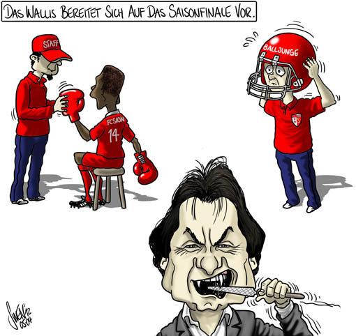 Neues aus dem Zirkus Sion: Spieler Serey Die ohrfeigt einen Balljungen, Trainer Roussey tritt trotz guten Leistungen vor den entscheidenden Spielen zurueck, sein Nachfolger Courbis geht nach 2 Wochen weil er keine Lizens hat. Weitere Kapriolen folgen bestimmt, Praesident Constantin bereitet sich bereits mit neuen Drohungen gegen den Verband auf das grosse Saisonfinale vor.