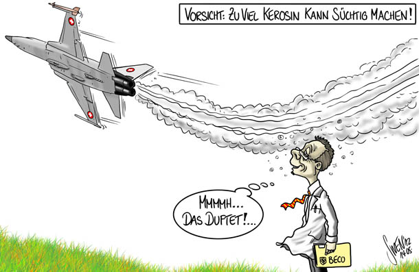 Jetabgase sind angeblich unbedenklich. Gemaess einer Untersuchung des Kantons Bern ist die Luftverschmutzung durch Armeeflugzeuge gering. Bleibt nur noch der Laerm in den Taelern als Argument gegen die Militaerflugplaetze. Jungfrau Zeitung