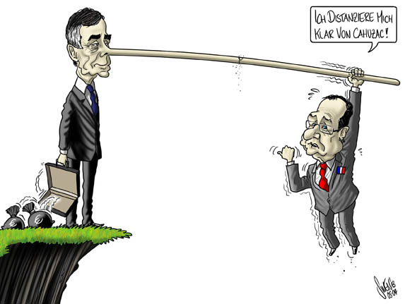 Frankreichs Budgetminister und selbsternannter Kaempfer gegen Steuerhinterziehung hat Steuern hinterzogen. Wieviel wusste Praesident Hollande? Auch Hollandes Finanzberater im Wahlkampf flog nun als Steuerbetrueger auf. Hollandes Ansage Frankreich zu veraendern gelingt ihm ausserordentlich schnell, einfach in die falsche Richtung mit den falschen Vertrauten...