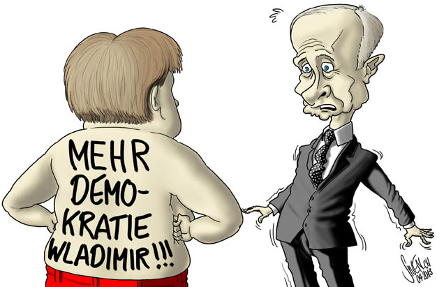 An einer Messe in Hannover stuermten nackte Femen-Aktivistinnen mit Slogans gegen Putin auf die Brust geschrieben den Auftritt von Merkel und eben diesem Wladimir Putin.