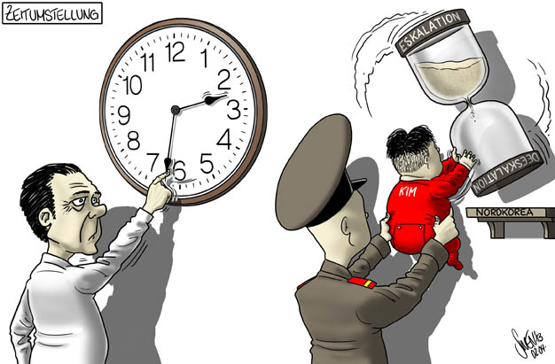 Der kleine Nordkoreanische Kim droht der Welt mit Krieg. Er fuehrt den Laden somit gleich weiter wie sein Vater, der immer mal wieder drohte, danach alles runterspielte und wieder drohte...