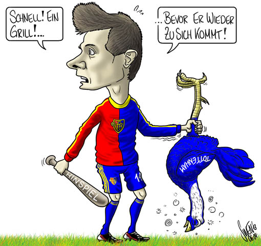 Im Europa-League Viertelfinale erreicht der FCB ein grossartiges 2:2 in London gegen Tottenham. Nun muessen die Basler aber im Rueckspiel zu Hause das gute Resultat bestaetigen koennen gegen den angeschossenen Kampfhahn aus England.