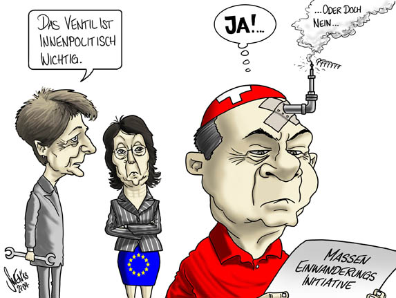 Die Schweiz beschraenkt die Zuwanderung aus der EU mit der sogenannten Ventilklausel. Europa hat gar keine Freude an der Rosinenpickerei. Bald stimmen die Schweizer wohl ueber eine weitere Initiative der SVP ab, in der es wieder einmal um den neuerlichen Versuch geht, groessere Huerden gegenueber der EU aufzubauen.