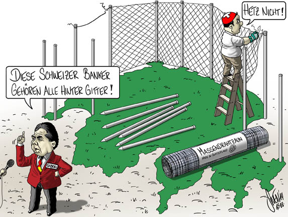 Kaum gehts um Steuern die über ein Schweizer Bankkonto hinterzogen wurden, wettern die Deutschen wieder gegen Schweizer Banken, so wie SPD-Chef Sigmar Gabriel zum Fall Hoeness. Dank der Zuwanderungsinitiative leben vielleicht bald eh alle Schweizer hinter Gittern und Gabriel und co bekommen was sie wollen.
