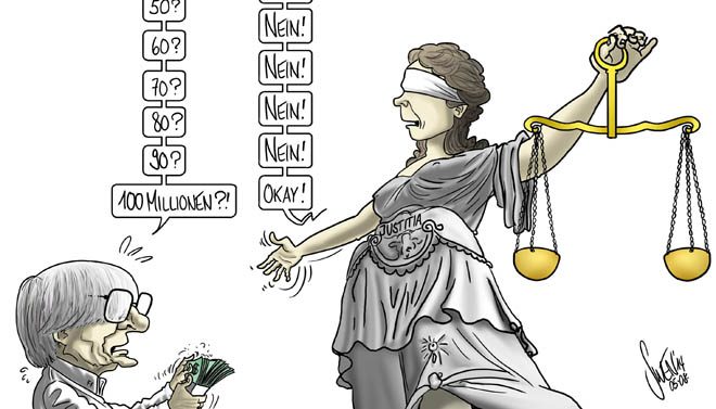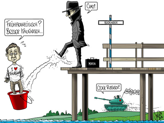 Cartoon frei nach Loriots Badeente.