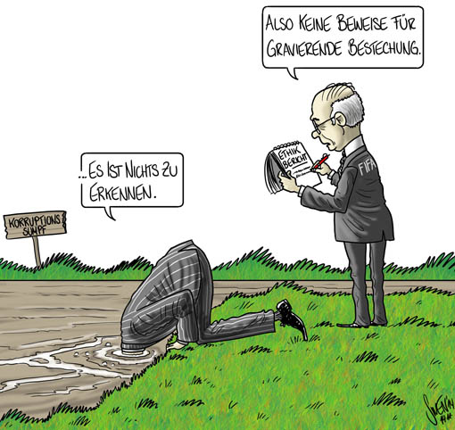 Die FIFA-Ethikkommission spricht die FIFA vom Vorwurf der Korruption bei der Vergabe der Weltmeisterschaften nach Qatar und Russland frei - was ja eh schon ein Witz ist, da die Ethikkommission von der Angeklagten eingesetzt wurde. Die Beweise wären zu wenig klar trotz vielen Unregelmässigkeiten. Jedoch der Chefermittler der Kommission widerspricht nun diesem Bericht. Hier gehts weiter und wird lustig: