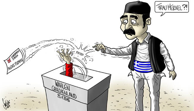 Deutschland mischt sich in den Wahlkampf in Griechenland ein. Sollte der linke Tsipras gewinnen, besteht die Möglichkeit eines Austritts der Griechen aus dem Euro. Damit würden die bisherigen Hilfszahlungen der Eurostaaten nie mehr zurück bezahlt. Vor allem die Deutschen investierten bisher sehr viel in die Rettung Griechenlands.