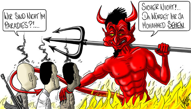 Es gibt aber tausend bessere Wege Mohammed mit dem Bleistift zu umgehen und viel bissiger gegen die ganze Scheisse anzuzeichnen!