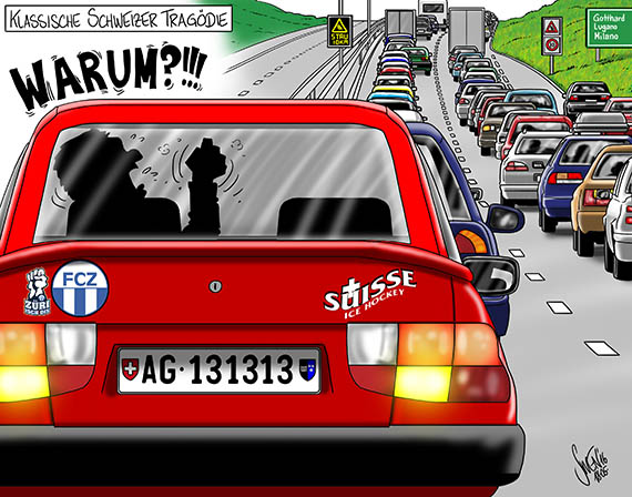 Alle Jahre wieder rund um Pfingsten stehen die Leute im Stau vor dem Gotthard, erst Richtung Süden, danach Richtung Norden. Wenn man dann noch im Wagen mitbekommt wie die Schweizer an der Eishockey-WM untergehen oder noch schlimmer, wenn man FCZ-Fan ist...