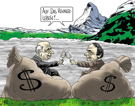 Nach FIFA-Boss Blatter triffts nun auch UEFA-Boss Platini, Rücktritt wegen krummen Finanzgeschäften.
