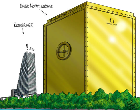 Die Novartis stösst Aktien des Basler Chemie-Konkurrenten Roche ab und kassiert um die 14 Milliarden Franken. Wohin damit? Das höchste Basler Gebäude ist zur Zeit der Rochetower...