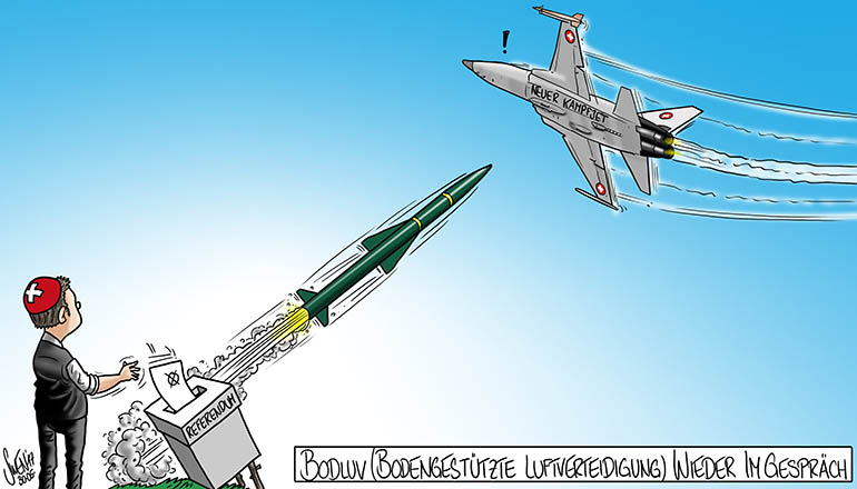 Neuer Anlauf. Eine Expertengruppe empfiehlt den Kauf neuer Kampfjets und einer bodengestützten Luftverteidigung. Noch ist unklar ob so ein Kauf vors Volk gebracht wird, bzw ob es zu einem Referendum kommen wird. Vor 3 Jahren lehnte das Stimmvolk den Kauf neuer Kampfjets (Gripen) ab. Allerdings sind die Aussichten auf einen Erfolg dieses Mal grösser, da die alten Jets ersetzt werden müssen und der Bund den gesetzlichen Auftrag der Luftverteidigung erfüllen muss.