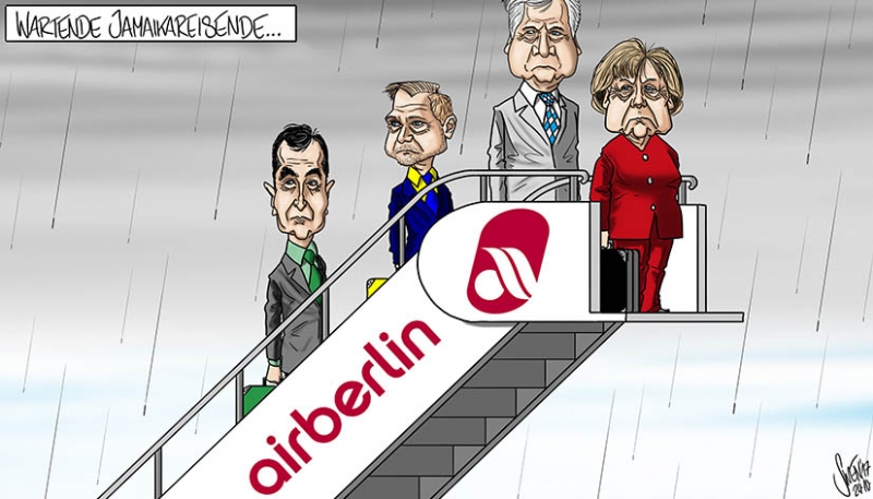 Schwierige Koalitionsverhandlungen in Deutschland. Merkel versucht mit ihrer CDU eine Regierung aus CSU, FDP und den Grünen zu zimmern, die sogenannte Jamaika-Koalition (schwarz, gelb, grün).