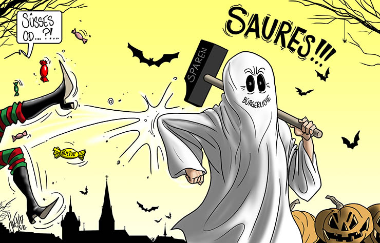 Die Stadt Baden muss sparen. Die Bürgerlichen wollen mehr sparen und dafür die Steuern nicht erhöhen. Die Linken die Steuern um 8% erhöhen und keine grossen Sparmassnahmen auf Kosten der Kultur und der Verwaltung. Die Bürgerlichen setzten sich dann zumindest teilweise durch.