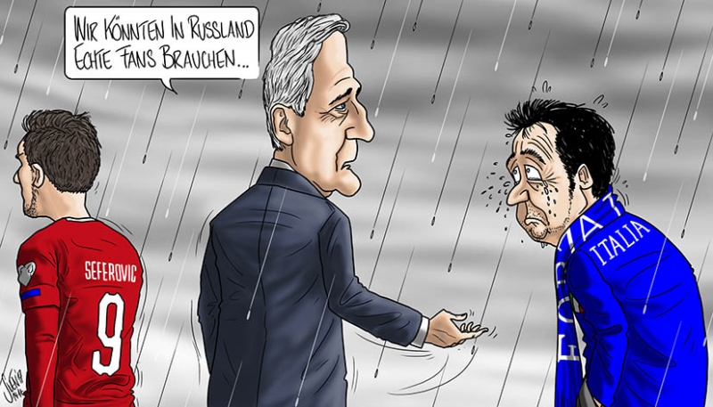 Trotz starkem Regen und kaum bespielbarem Rasen besteht die Schweiz in Basel gegen Nordirland (0:0, Hinspiel 1:0 für die Schweiz) und qualifiziert sich für die WM. Die sogenannten Fans allerdings pfiffen Seferovic bei seiner Auswechslung gnadenlos aus, weil er die eine oder andere Chance nicht nutzte... einfach nur peinlich!