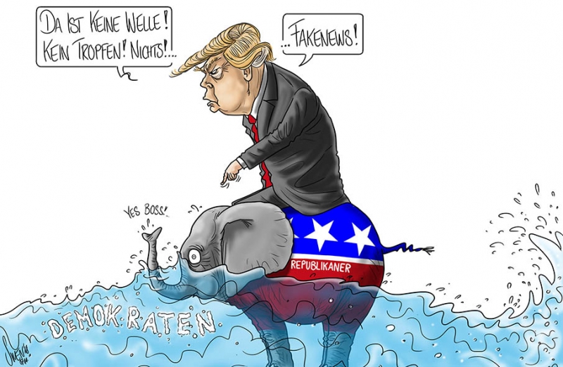 Die grosse blaue Welle der Demokraten fiel kleiner aus als von ihnen erwartet. Sie gewinnen die Mehrheit im Repraesentantenhaus, im Senat legen die Republikaner zu. Trump feiert die Wahlen als grossen Sieg, obwohl er nun unter schaerferer Kontrolle der Demokraten steht, was ihm aber ziemlich egal sein wird.