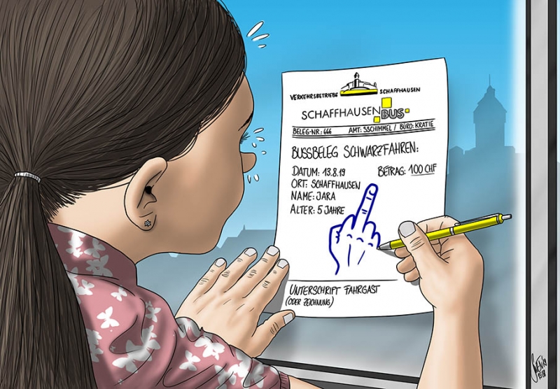 Ein fünfjähriges Mädchen fährt mit seiner älteren Schwester in Schaffhausen mit dem Bus. Sie wissen, wo ein- und aussteigen, die zehnjährige Schwester hat ein Jahresabo. Alles gut. Nicht ganz. Das kleine Mädchen wird wegen Schwarzfahrens mit 100 Franken gebüsst. Zwar fahren in der ganzen Schweiz Kinder bis sechs Jahre gratis mit Zug und Bus, aber nur in Begleitung eines Erwachsenen – und erwachsen ist man laut der Tarifbestimmung 600 erst mit zwölf Jahren. Die kleine Schwester war also unbegleitet ohne Billett unterwegs, dafür wurde sie gebüsst (AZ)
