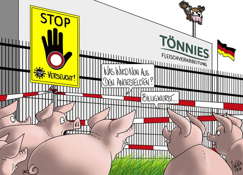 "Die Sars-CoV-2-Verbreitung im Fleischbetrieb der Firma Tönnies ist ein Paradebeispiel dafür, wie eine rücksichtslose Firmenleitung, aber auch zumindest teilweise ineffiziente Behörden einen richtig grossen Ausbruch überhaupt erst ermöglichen können. Dafür zahlen nun alle Menschen im Kreis Gütersloh einen inakzeptabel hohen Preis, wirtschaftlich wie gesellschaftlich." NZZ