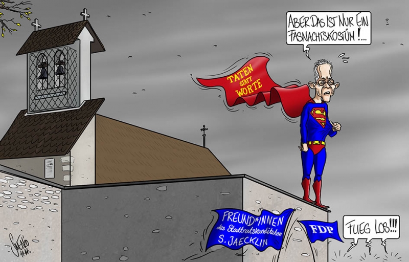 Endlich geht was im Badener Stadtratswahlkampf. Ein Flyer mit dem Titel «Taten statt Worte» vergleicht die Leistungen der beiden Badener Stadtratskandidaten. Da der Flyer aus dem Lager von Jaecklin stammt, ist die Liste seiner Erfolge wenig überraschend viel länger als diejenige von Steiner.