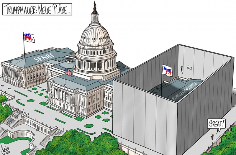 Midtermwahlen in den USA: Die Demokraten gewinnen die Mehrheit im Repraesentantenhaus und koennen somit Praesident Trump die naechsten zwei Jahre besser kontrollieren. Zum Beispiel wird Trump seine Mauer zu Mexiko nicht bauen koennen. Im Senat hingegen bauten Trumps Republikaner die Anzahl Sitze leicht aus.